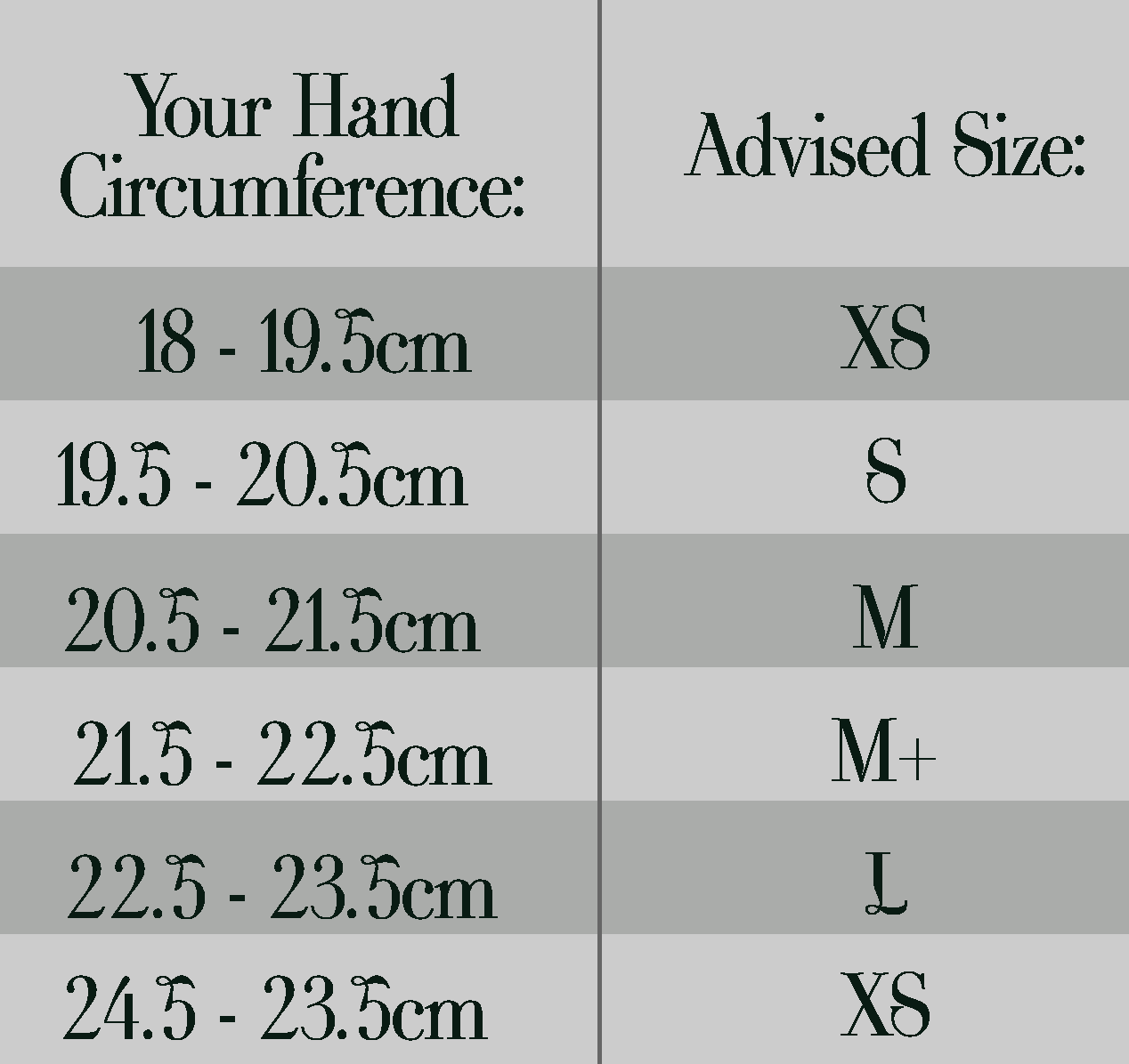 As an example, my measurement is 20.5cm, but my perfect size, as per the chart to the left, is size Small, and it's a great fit. I can even squeeze into an XS, but prefer not to have that much struggle.