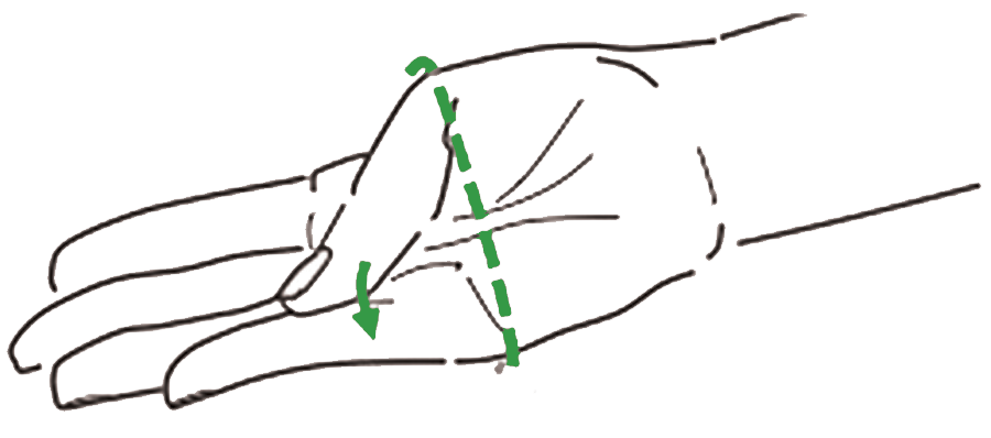 Start by folding your thumb as far across your palm as possible, as if you were putting a bangle on:
