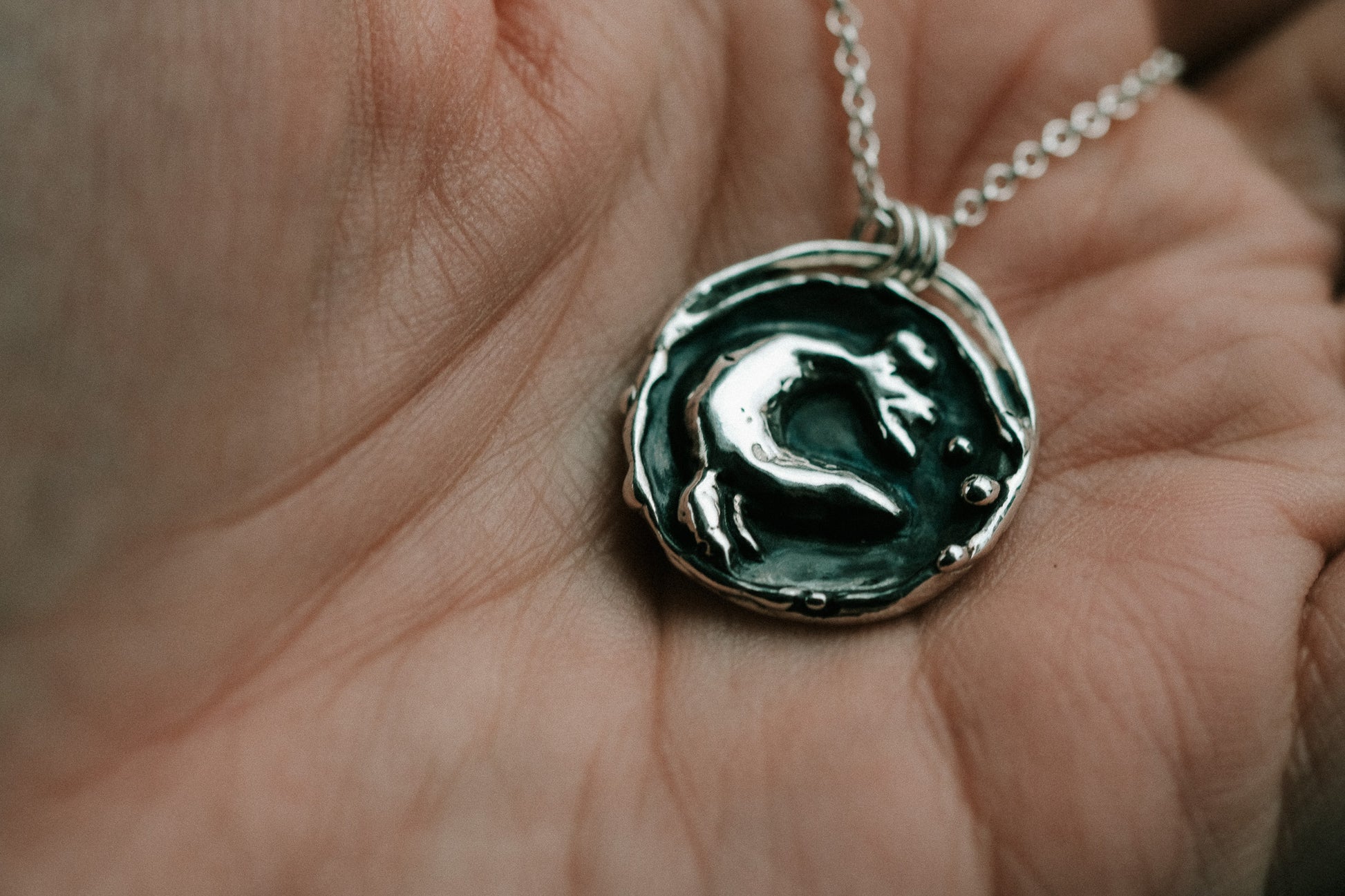 A playful seal, with bubbles, carefully carved and sculpted in wax before being cast in solid sterling silver. This piece is one of a kind, and so special.
